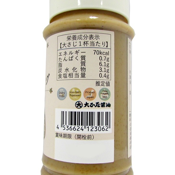 | 原材料 | 菜種油、天然醸造醤油、純米酢、砂糖、胡麻、卵黄、椎茸 |