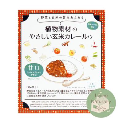 - 小麦粉を使用せず、4種の野菜(トマト、玉ねぎ、にんにく、にんじん)とりんご、15種のスパイスで香り豊かに仕上げた植物素材100%、玄米粉使用グルテンフリーのカレールゥです。