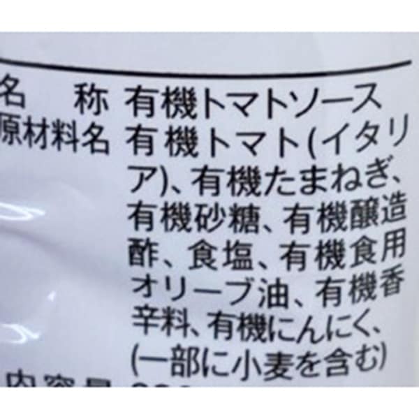 | 原材料 | 有機トマト、有機たまねぎ、有機砂糖、有機醸造酢、食塩、有機オリーブ油、有機香辛料、有機にんにく |