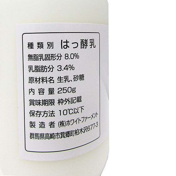 飼料にこだわり育った乳牛の生乳と甜菜糖のみで作られたヨーグルト。低温でゆっくり長時間はっ酵させるときめの細かい美味しいヨーグルトになります。酸味を抑え、まろやかに仕上げました。容量 250ml・1本 原材料 生乳、ビートグラニュー糖、乳酸菌 アレルギー 乳 賞味期限 冷蔵14日 生産者/販売者 群馬県高崎市 ホワイトファーメント 商品コード/JANコード 717454007/4589558301624 -
