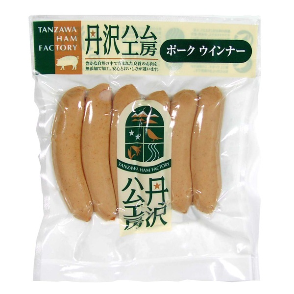 - えさに大麦・さつまいも、非遺伝子組換えのとうもろこしと大豆粕を使用。豚肉を解体してすぐにペーストにしたものを加えることにより、天然の粘着力を活かしています。ノーマルタイプの細挽ウインナー。生地には弾力があり、旨みが閉じ込めてあり、自慢の逸品です。