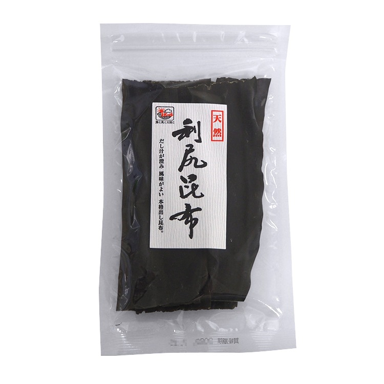 - 北海道道北産天然利尻昆布。風味がよく、澄んだ透明な出しが取れるのが特徴です。素材の味を生かすお料理に向いています。
