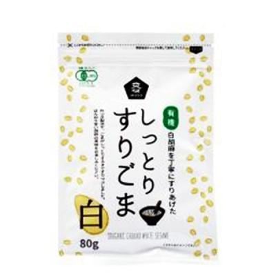 - 香ばしく焙煎した有機白胡麻を、杵つき製法で胡麻の旨み(油分)が出るまで丹念にすりつぶした、しっとりした食感のすりごまです。有機JAS認定商品。