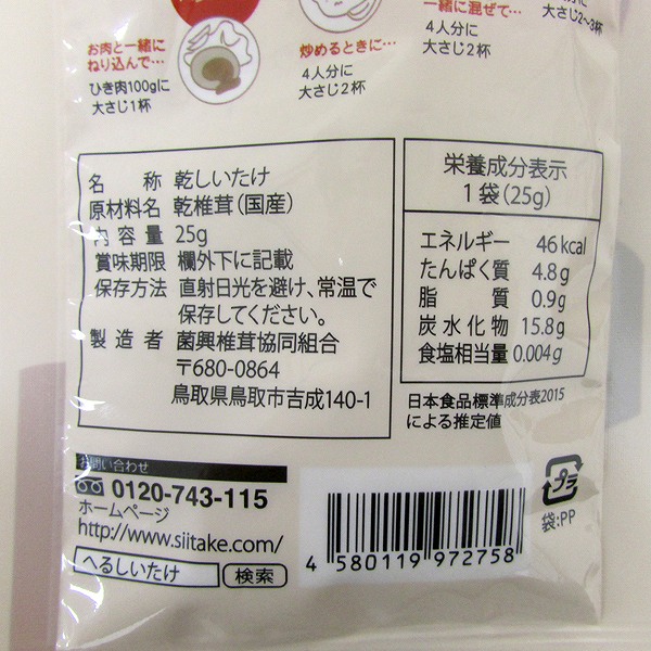 | 生産地 | 鳥取県鳥取市 菌興椎茸共同組合 |