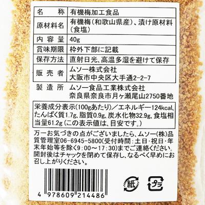 | 原材料 | 有機梅(和歌山県産)、漬け原材料(食塩) |