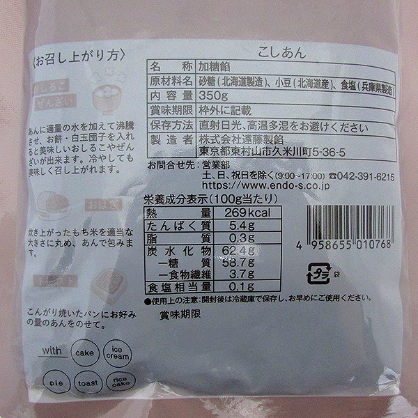 | 生産地 | 東京都東村山市 遠藤製餡 |