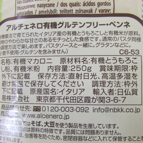 - イタリア産の有機米と有機コーンのみを使用した、ほんのり甘く、もちっとした食感が楽しめるペンネです。ゆで時間10?12分。グルテンフリー。原産国:イタリア
