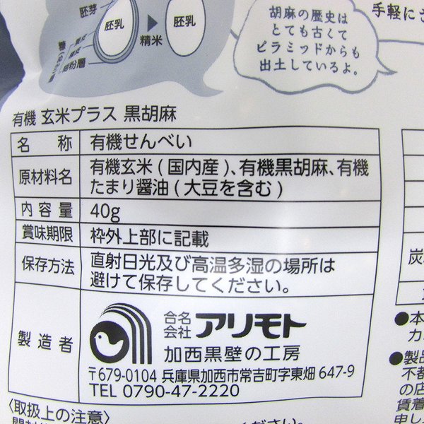 | 原材料 | 有機玄米、有機黒ごま、有機たまり醤油 |