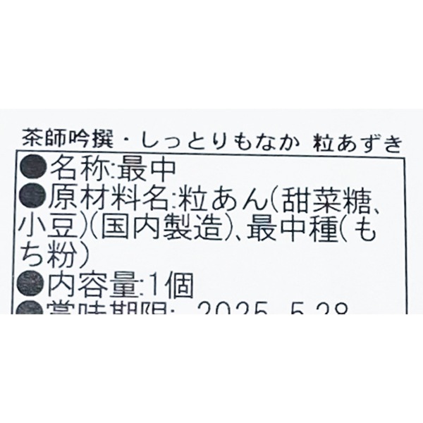 - 国内産の小豆と甜菜糖で作った粒あんを、しっとり食感のもなか皮で包みました。小豆の粒の食感と甘みが味わえる、新感覚の和スイーツです。