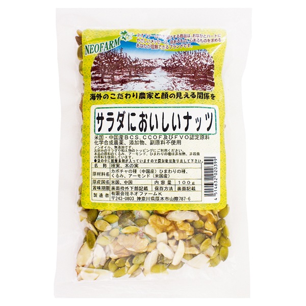 | 原材料 | かぼちゃ、ひまわりの種、アーモンドスライス、くるみ、食塩 |