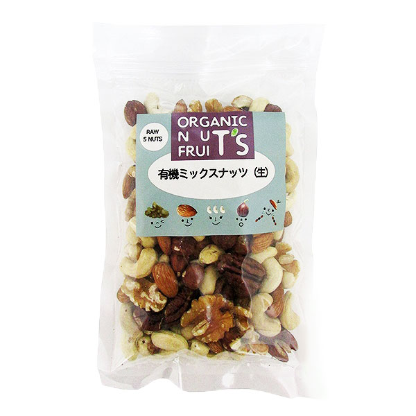 - 有機栽培された5種のナッツをミックスしました。塩、油等で調味されていないので、お好みで電子レンジやオーブントースターなどで軽くローストすると、香ばしくお召し上がりいただけます。