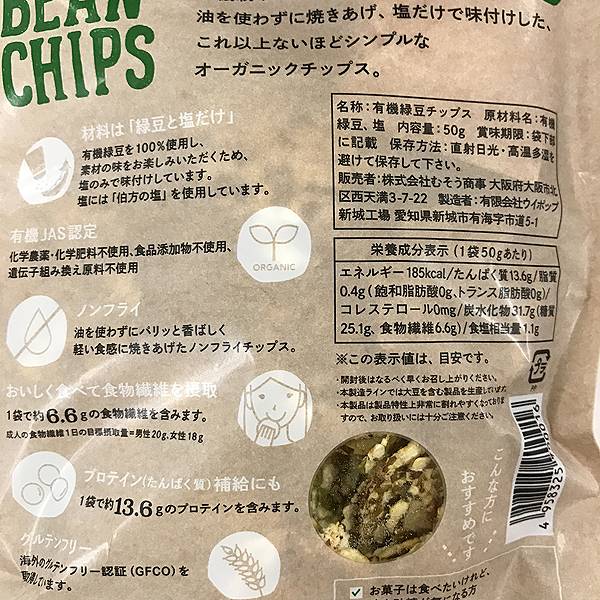 - 有機緑豆を、油を使わずに焼き上げて食塩で味付けしました。そのままおやつやおつまみとして、また砕いてサラダやスープにかけてどうぞ。