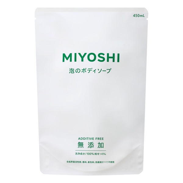 - 水とせっけん(パーム核油・パーム油)のみで作られたボディソープ。泡もちがよくぬるつきが少ないのでさっぱりと洗えます。香料・着色料・防腐剤は不使用です。