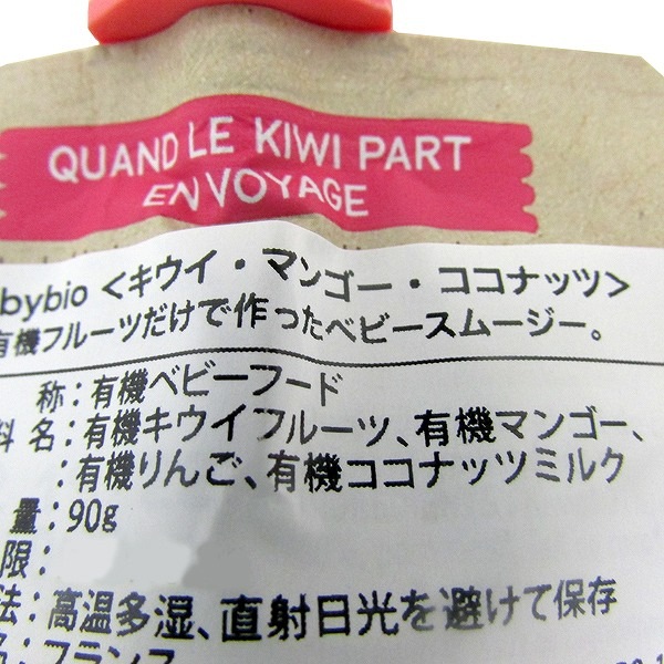 | 原材料 | 有機キウイフルーツ、有機マンゴー、有機りんご、有機ココナッツミルク |