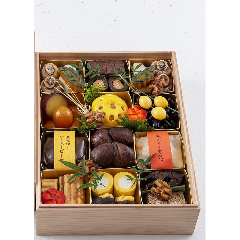 | セット内容 | 主な原材料 【砂糖】有機砂糖(アルゼンチン産) 【塩】海の精(東京都)/モンゴル塩 【酢】飯尾醸造(京都府)/庄分酢(福岡県) 【醤油】栄醤油(静岡県)/森田醤油(島根県) 【味噌】マルカワみそ(福井県) 【本みりん】白扇酒造(岐阜県) 【料理酒】仁井田本家(福島県) 【白だし】七福醸造(愛知県) 【壱の重】全16品 壱の重 特大伊勢海老 黄金焼き 天然あわび 万年煮 焼き雲丹 特大 天然タイガー海老 焼き穴子 帆立雲丹焼き 鰆有機味噌漬け焼き 蛸やわらか煮 いくら 天然マグロ大とろ 漬け焼き 有機無花果 赤ワイン煮 有機栽培 薩摩芋レモン煮 有機栽培 花人参 有機栽培 木の葉南京 有機栽培 花蓮根 有機栽培 葉銀杏 【弍の重】全21品 弍の重 有機栽培 胡桃羊羹 有機栽培 干し柿クリームチーズ射込み 有機栽培 里芋含め煮 銀鮭昆布巻き 寒ぶりの麹漬け 有機栽培 柚子釜なます 有機栽培 安納芋の金団 栗渋皮煮 平飼い卵 錦玉子 有機栽培 胡桃飴煮 有機栽培 椎茸黄味寿司 有機栽培 丹波 黒豆 有機栽培 金柑の蜜煮 かすみ鴨 甲州焼き 黒毛和牛 ローストビーフ 平飼い卵と天然海老の伊達巻 練甘露煮 有機栽培 薩摩芋レモン煮 有機栽培 葉銀杏 有機栽培 花人参 有機栽培 木の葉南京 |