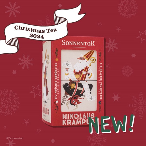 | 原材料 | 【ニコラウスティー】有機アップル、有機ハイビスカス、有機ローズヒップ、有機シナモン、有機洋ナシ、有機マルメ ロ、有機オレンジピール、有機クローブ/バニラ香料 【クランプスティー】有機バーチリーフ、有機カモミール、有機エルダーフラワー、有機クランベリー、有機ブルーベ リー、有機ネトル、有機ローズヒップ、有機リンゴンベリー、有機ジュニパーベリー |