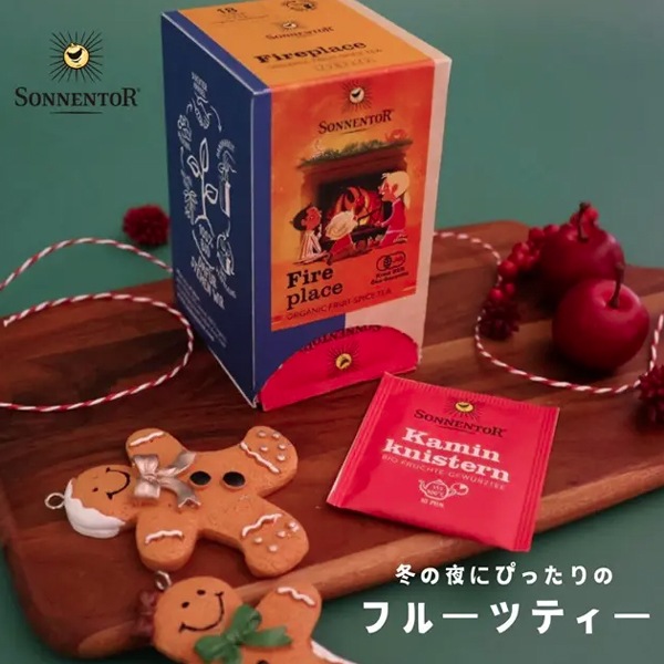 - 【11月11日以降発送予定】子どもたちの笑顔に心あたたまる冬の夜にぴったりのフルーツティー深々と雪が降るクリスマスの夜、家の中では子どもたちが暖炉を囲んでいます。プレゼントに思いを馳せながらりんごを焼くのも、クリスマスの楽しみの一つです。りんご、シナモン、オレンジ、バニラの心地よい香り、ローズヒップの暖炉の炎のような美しい赤。冬のひと時をゆっくりと過ごすのにぴったりなお茶です。