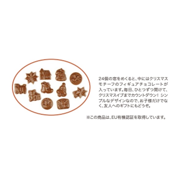 - 【11月11日以降発送予定】24個の窓をめくると、中からクリスマスモチーフのフィギュアチョコレートが出てきます。チョコレートを食べると、トレイの下にかわいいフェスティブなイラストが現れます。毎日、ひとつずつ開けて、クリスマスイブまでカウントダウン!