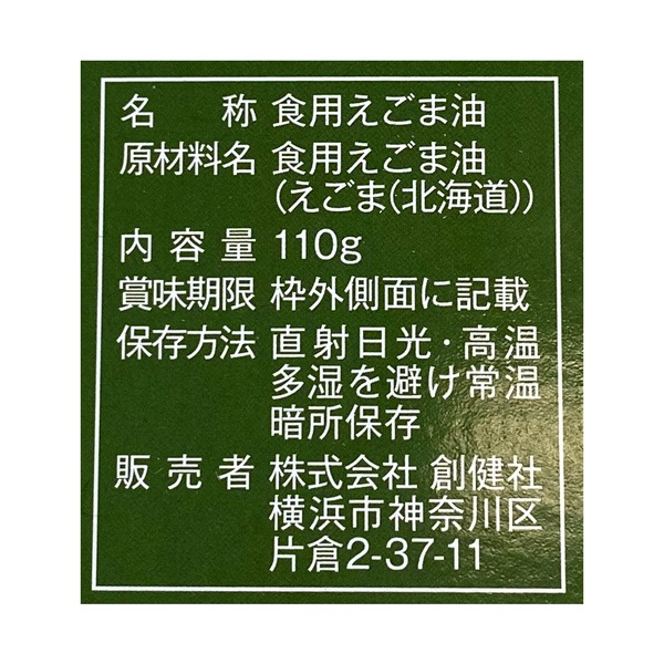 - 北海道産の豊かな自然の中で育てられたえごまの種子を、道内の工場で溶剤抽出せずに圧搾製法でじっくり搾りました。精製していないので、えごま本来の風味が活きています。