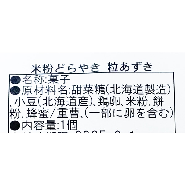 北海道十勝産の小豆「きたろまん」と甜菜糖で作った粒あんを、国内産米粉ともち粉で作ったモッチリ食感の皮で包みました。小豆の食感と甘みを楽しめるグルテンフリーのどらやきです。