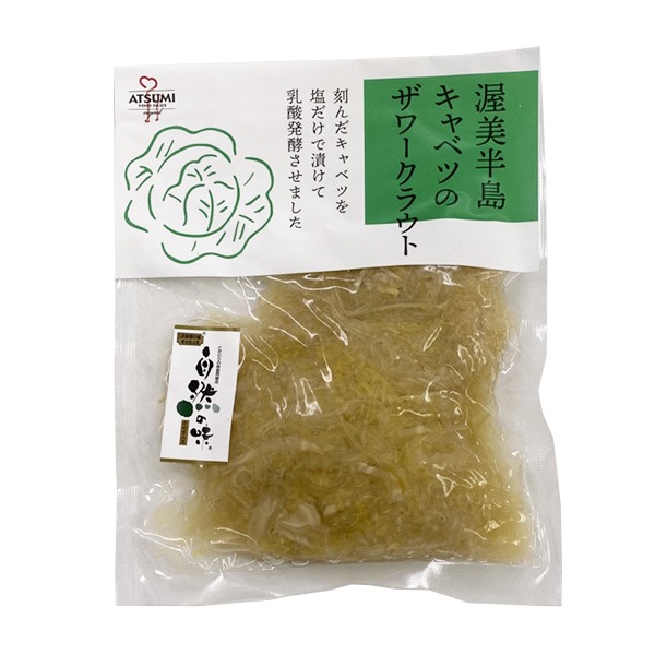 - 渥美半島で栽培されたキャベツを刻み、食塩のみで漬けて乳酸発酵させた国内産のザワークラウトです。肉料理の付け合わせとして抜群の相性です。