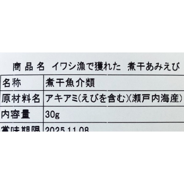 イワシ漁で獲れた 煮干あみえび 30g・1袋
