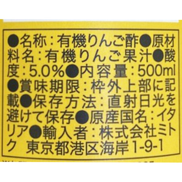 有機アップルサイダービネガー マザー入り 500ml・1本