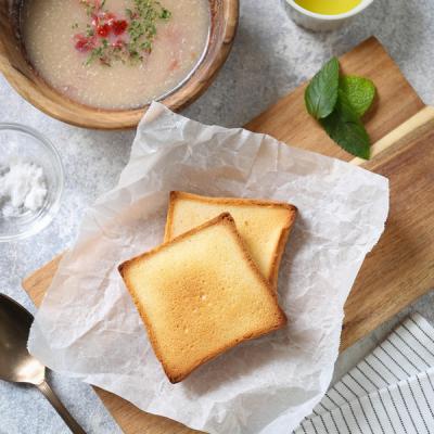 - 熊本県産の米粉100%、福岡産大豆使用の豆乳、沖縄産の花見糖、福岡県産またいちの塩など、主原料には主に九州産を使用しています。これまでの米粉パンにはない、キメの細かさが特徴です。トースターで温めるとサクッと香ばしく、電子レンジで温めると耳までフワフワモチモチの食感となります。