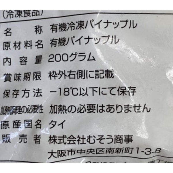 | 原材料 | 有機パイナップル(タイ) |