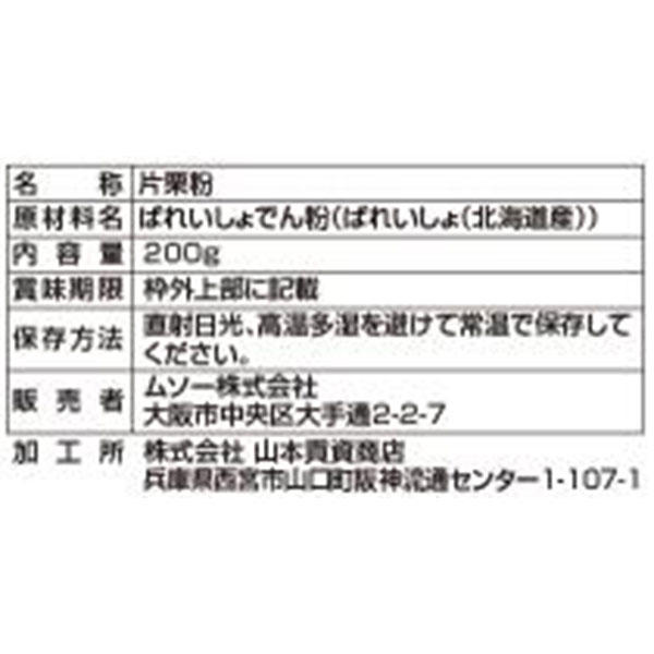 国内産特別栽培馬鈴薯使用 片栗粉 200g・1袋