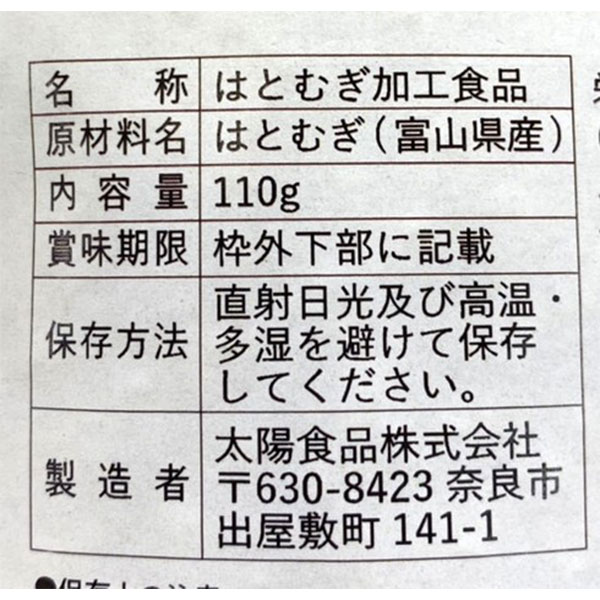 | 原材料 | はとむぎ(富山県産) |